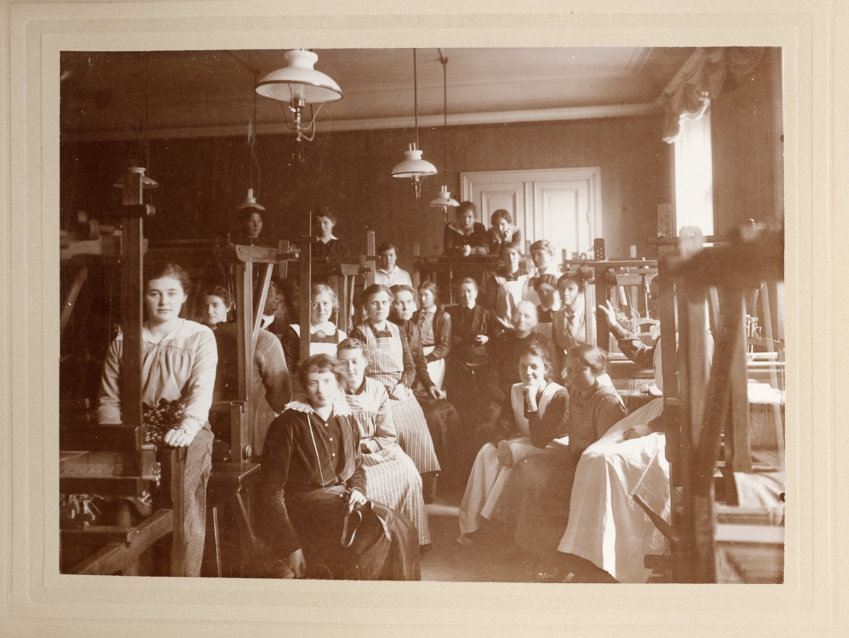 Gruppbild, vävsal. Johanna Brunssons vävskola.