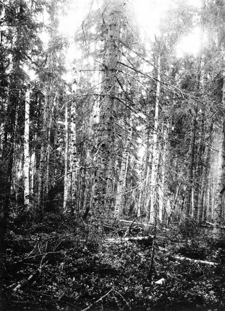 Biotop för morkulla, Scolopax rusticola Hoting, Tåsjö s:a Ångermanland 9/7 22 foto S. Alin Häckterräng för morkulla i Valå skog nära Hoting, Tåsjön, Ångermanland (blandskog af gran och björk med blåbärsris)
