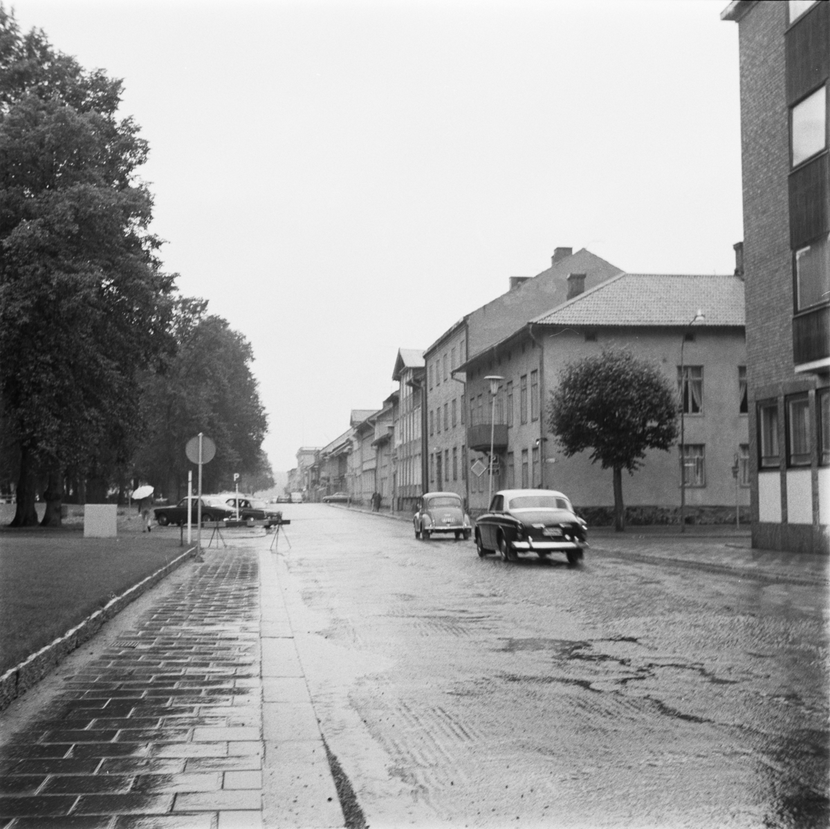 Vänersborg, Drottningatan. Första dagen med högertrafik