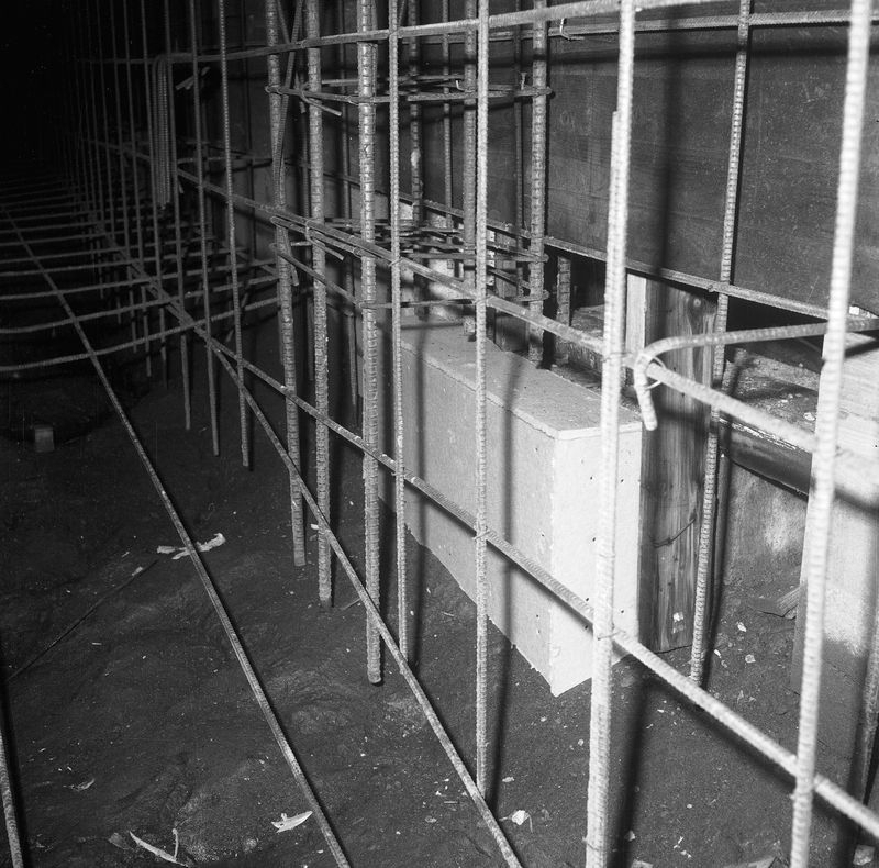 Plint för pelare i anslutning till avloppskanalen vid linje 13.