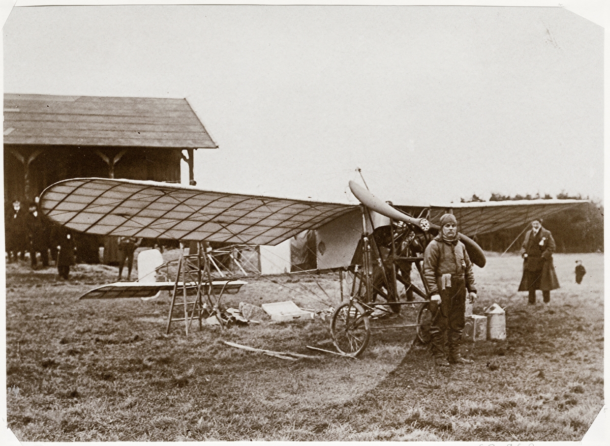 Vänersborg. Kapten Sundstedt vid sitt flygplan