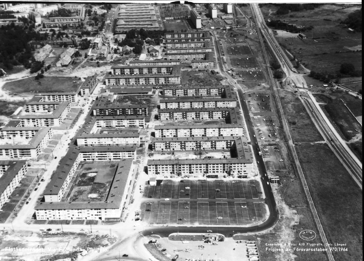 Göteborg, Västra Frölunda. Text på bild: " Flatåsområdet Västra Frölunda flygfoto"