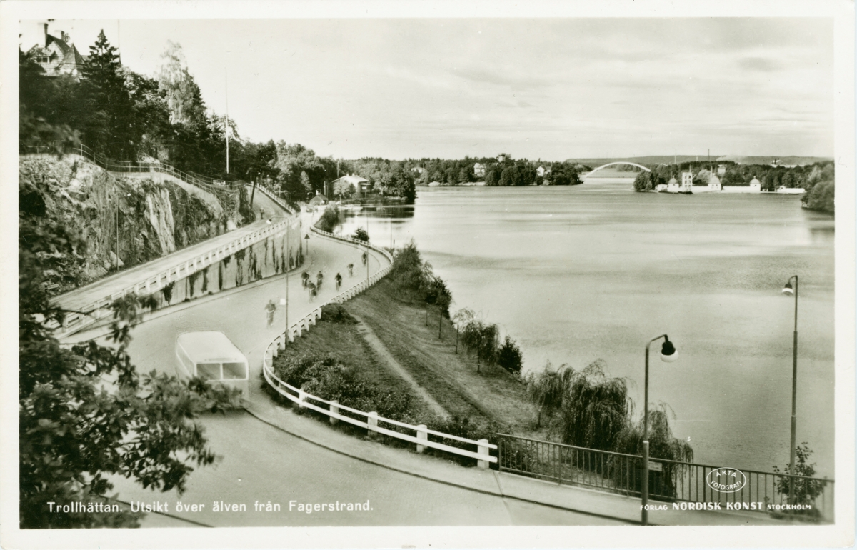 Trollhättan. Utsikt över älven från Fagerstrand