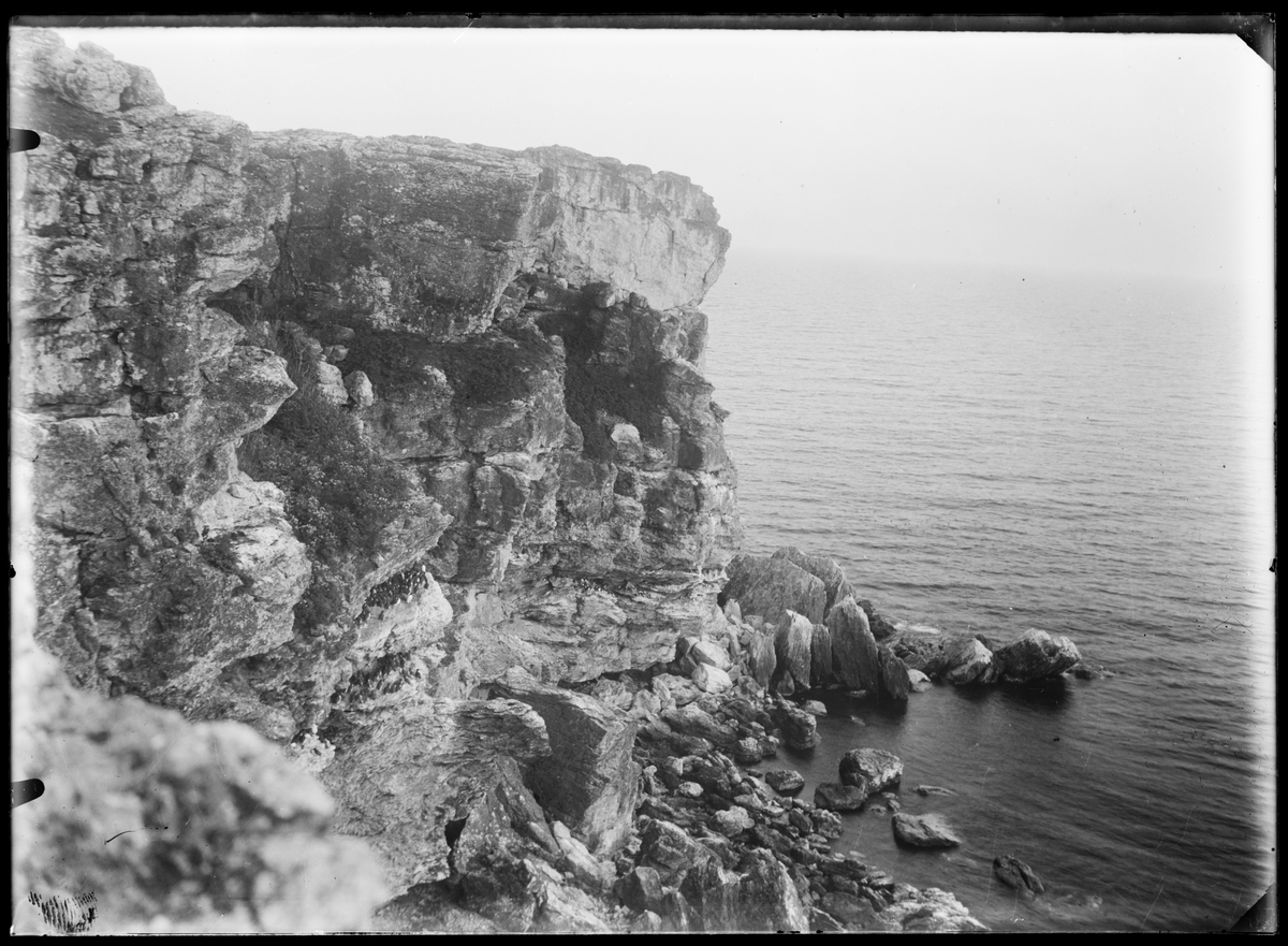 Stora Karlsö. Biotop för tordmule (Alca torda). Parti av svarthällar. Bon såväl bland blocken som på hyllorna.