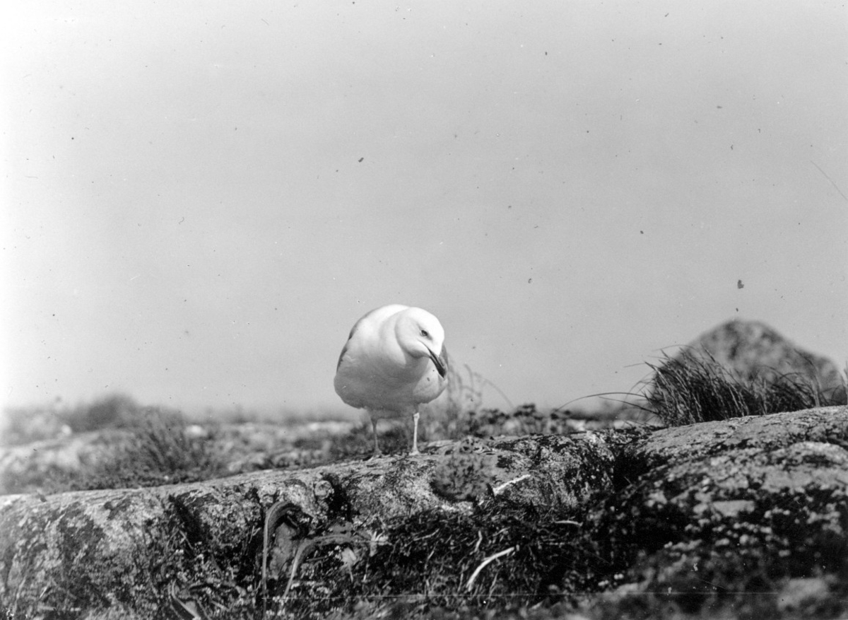 Gråtrut, Larus Argentatus, seende ned på unge