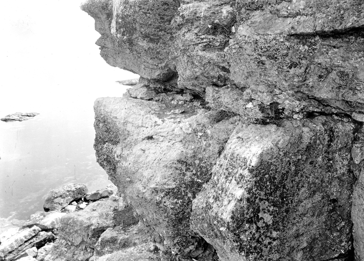 Boplats för sillgrisslor (Uria troile). Några ägg synliga på avsatsens yttre del.