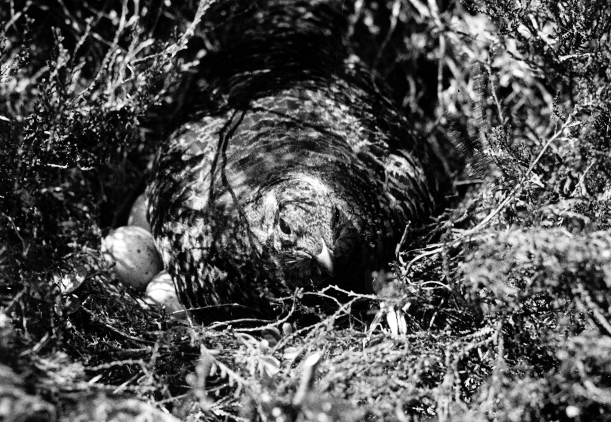 Orrhöna (Lyrurus t. tetrix) i sitt bo. Förtjusande