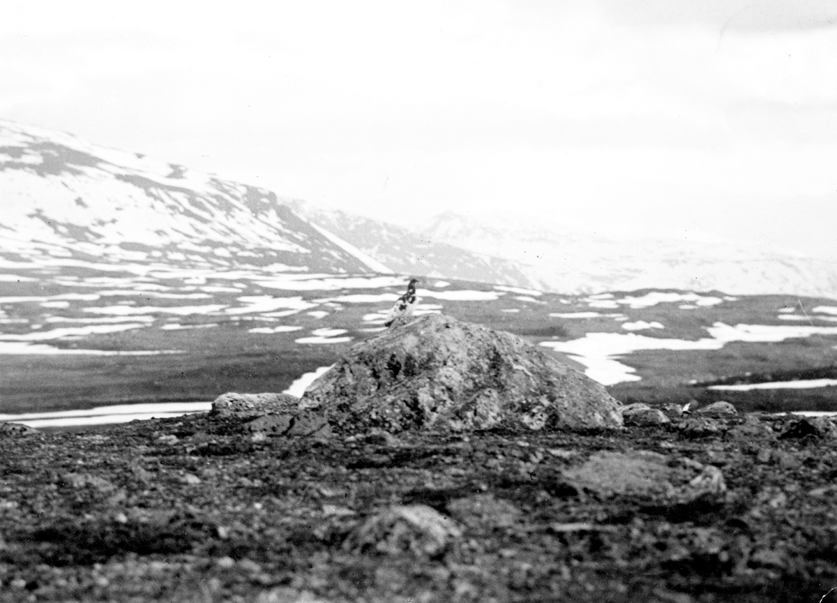 Fjällriptupp (Lagopus m. mutus) i häckningsterrängen. 1924