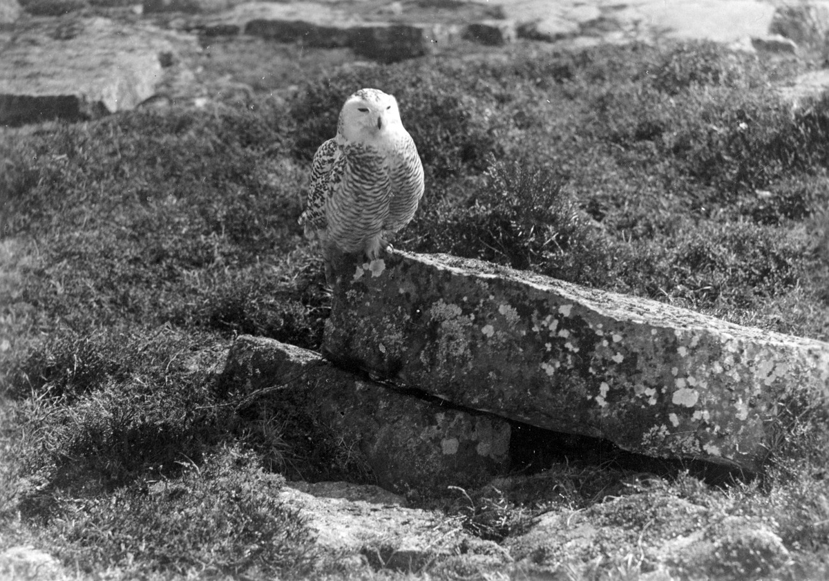 Fjelluggla, Bubo scandiacus, på Signilskär ( på flyttning) 18/4 1927 Foto hvem?