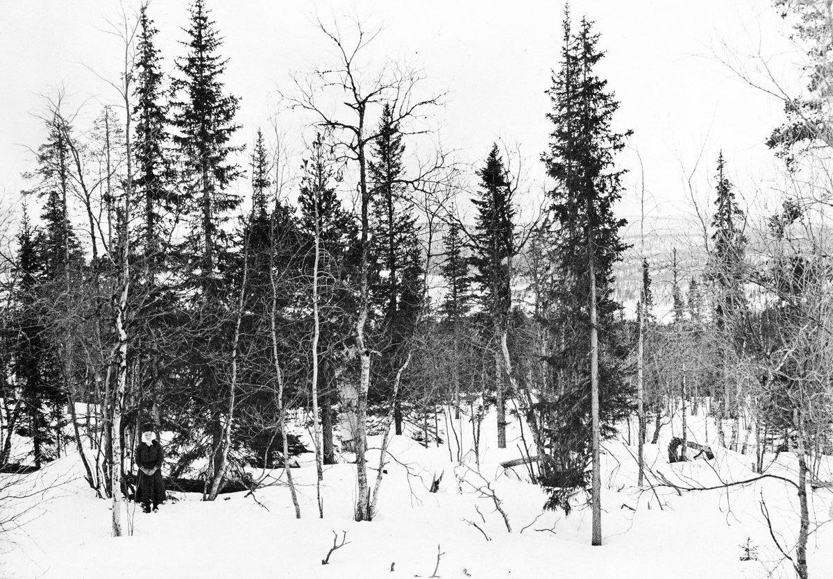Häckterräng för Lavskrika (Perisoreus infaustus) Nära Ållo luokta,nära stora Lulevattnet. !7 April 1920