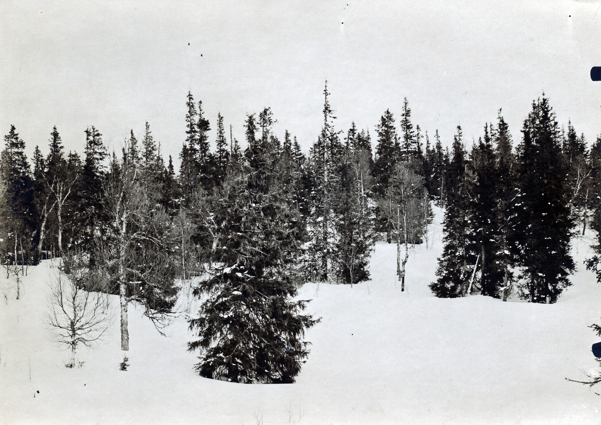 Kortvuxen, grenrik och delvis aftorkande granskog af fjälltyp, ca 500m öfv. h. vid Lilla Stensjön, Hotagens sn, Jämtland.