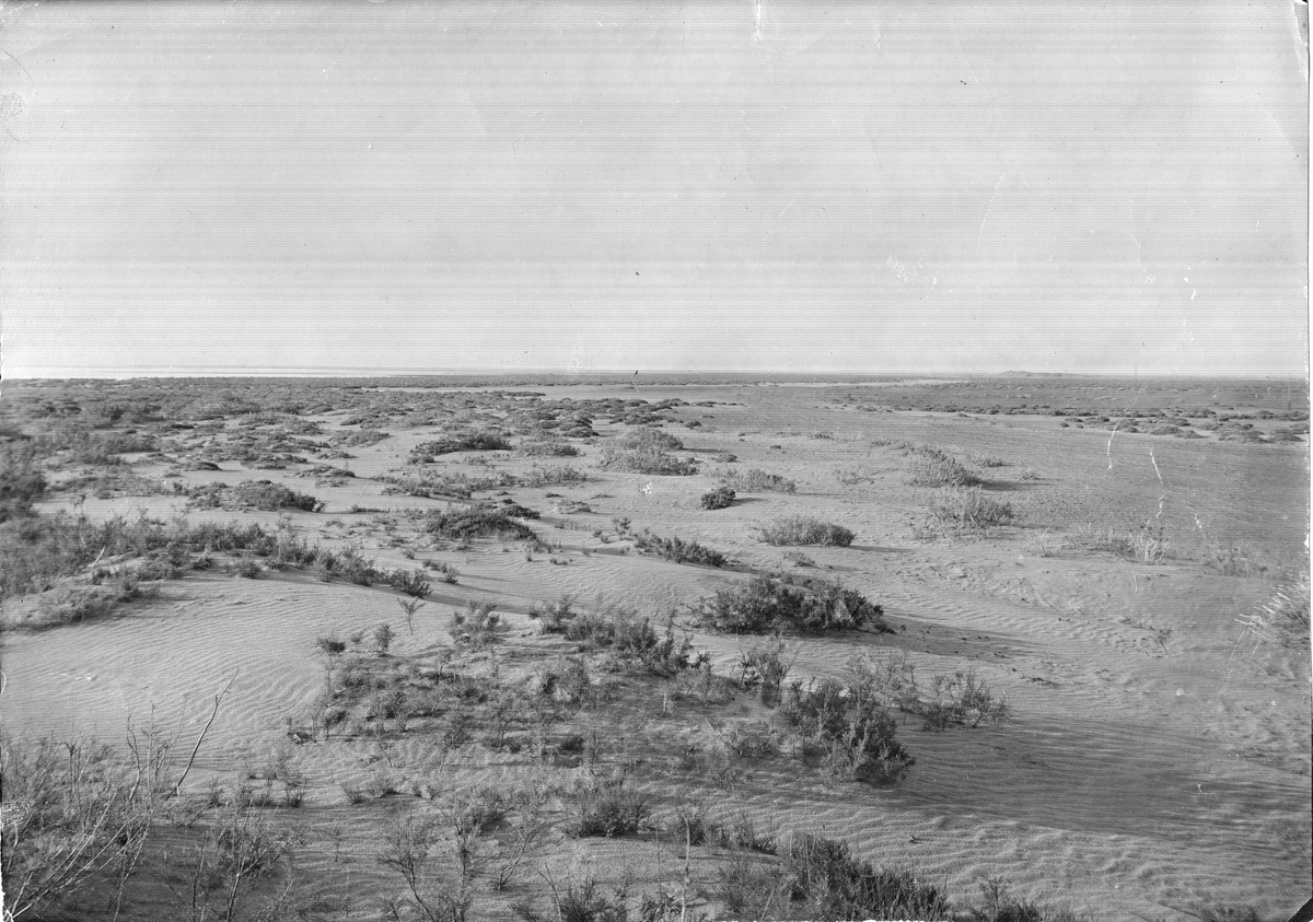 Sebka-terräng med chotter i bakgrunden , salsolaceer och i förgrunden tamarix(buske)?