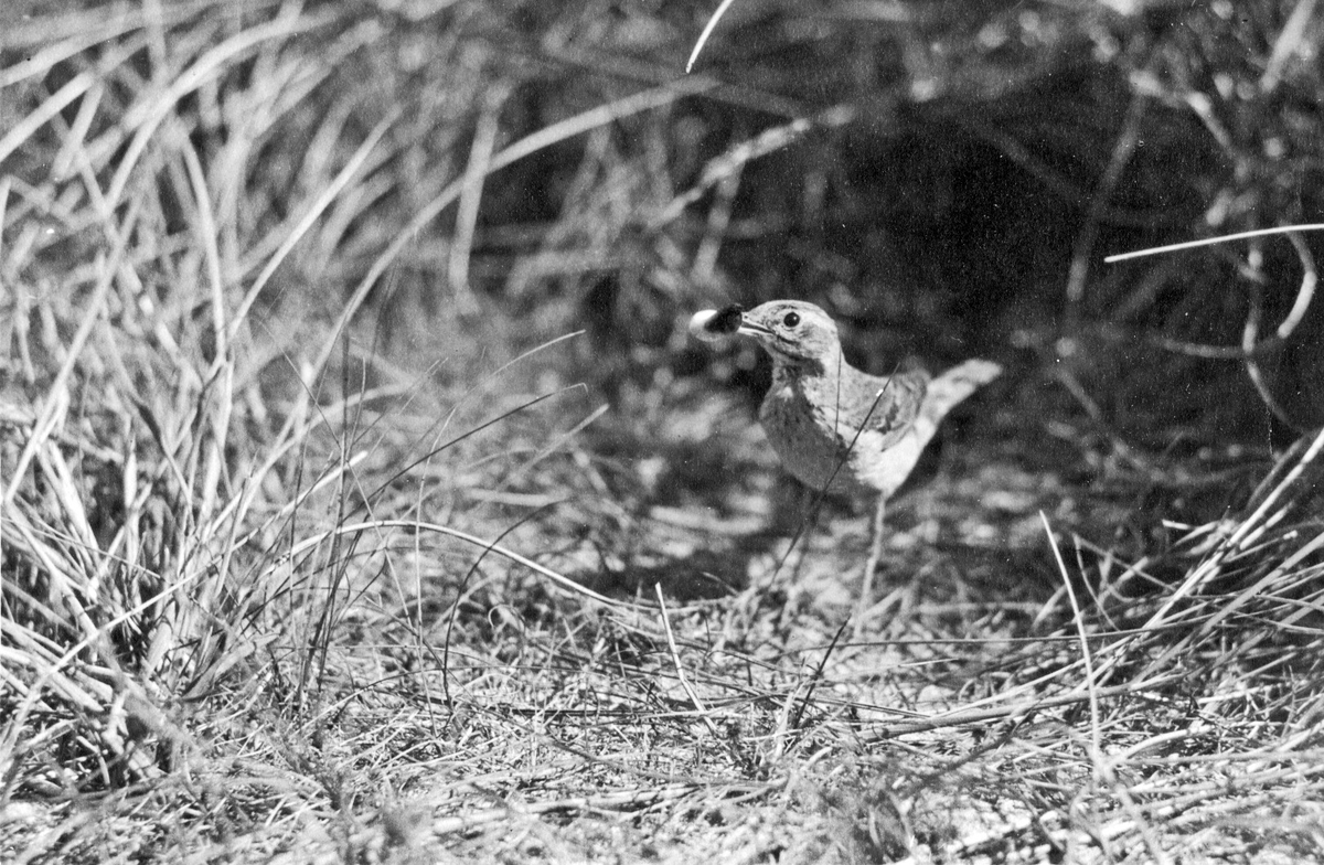 Fjällpiplärka mmed mat i näbben