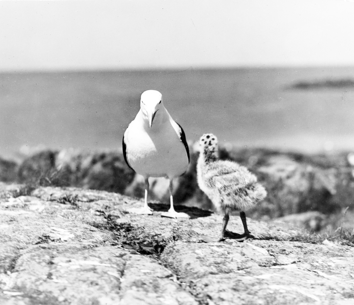 Havstrut med unge (seende lite faderslikt ned på honom)