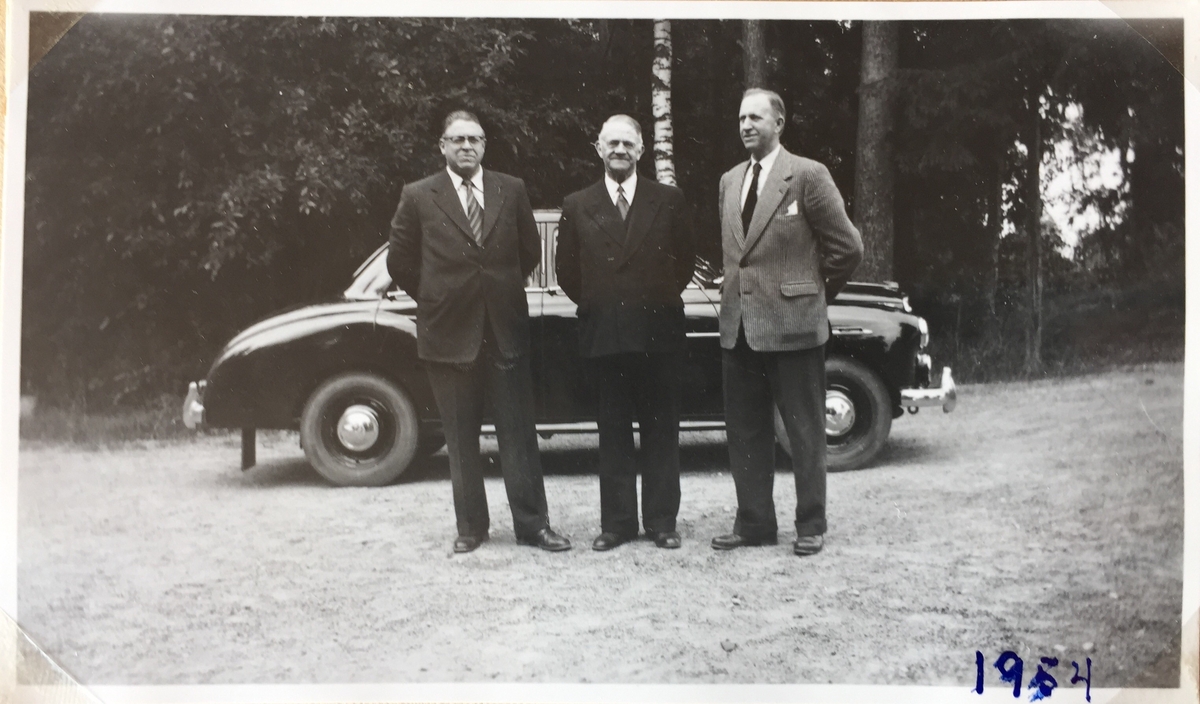 Vänersnäs, Bröderna Floberg framför Liberts nyinköpta vinröda Wolseley 4/44.