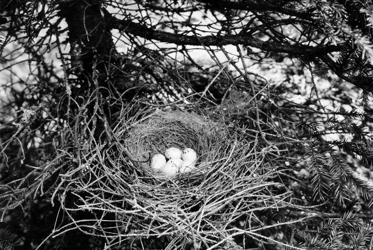 Bo av domherre, Pyrrhula vulgaris, St. Röå Hjo, Vestergötland 29 juni 1912