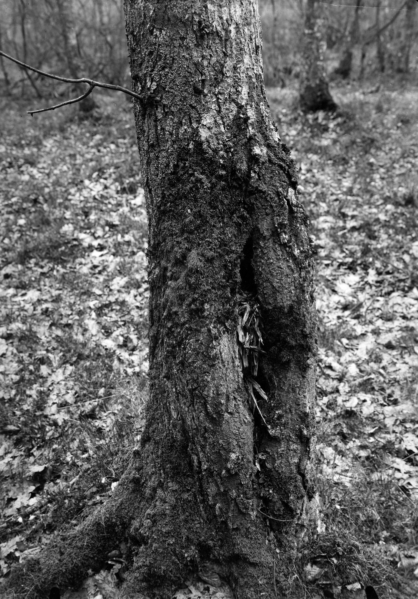 Bo av Trädkrypare, Certhia f. familiaris, i trädspringa. 17 Maj 1908.