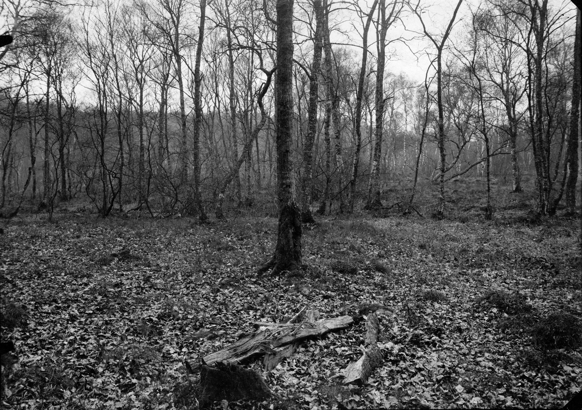 Boplats för Trädkrypare, Certhia f. familiaris, boet vid trädets fot. 17 Maj 1908.