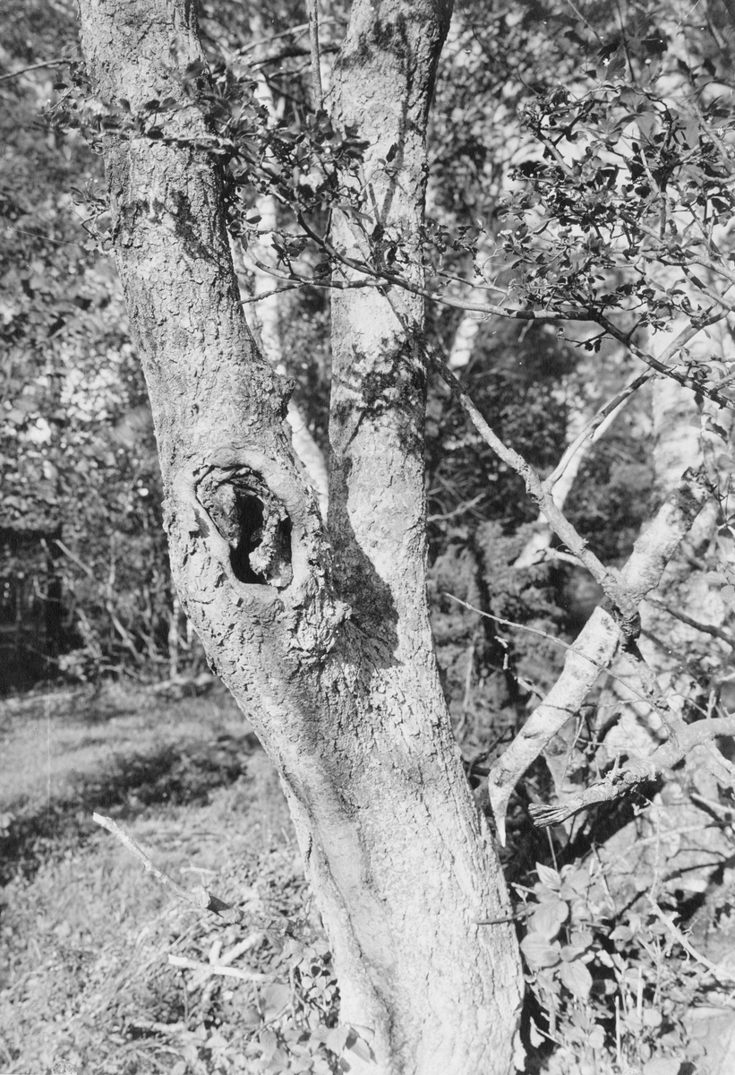 Boplats för halsbandsflugsnappare, Muscicapa collaris. Löväng i Klinte 8 juni 1918.