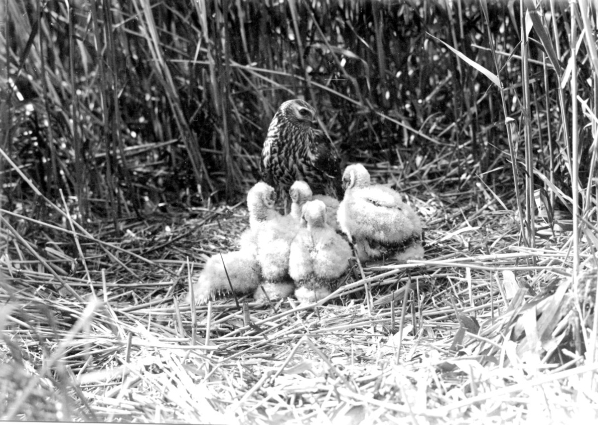 Blå kärrhökhona (Circus cyaneus) hos ungarna. 1923