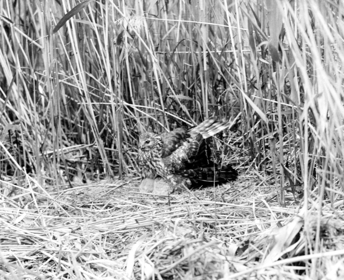Blå Kärrhök (Circus cyaneus) över ungarna.