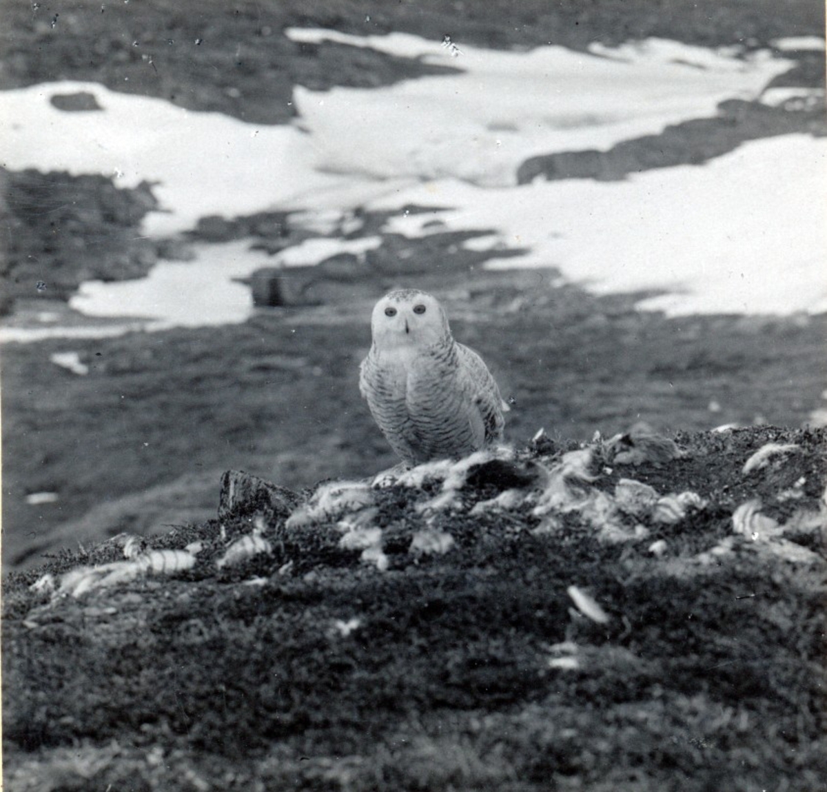 Fjälluggla,strix nyctea, i boet, 1924