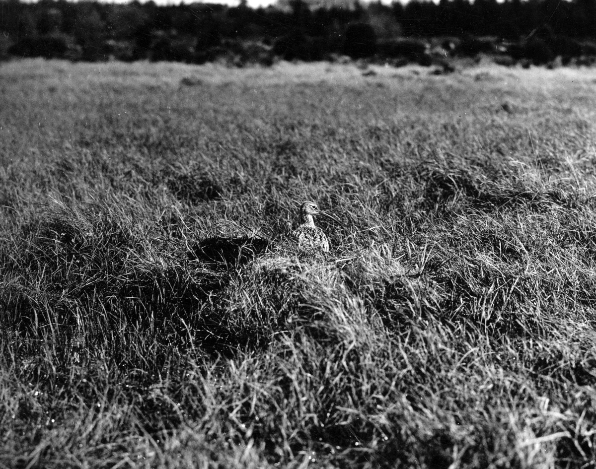 Storspov, Numenius arquata, smygande (vad?, kan inte tyda) i gräset. Vissmossen, Skåne