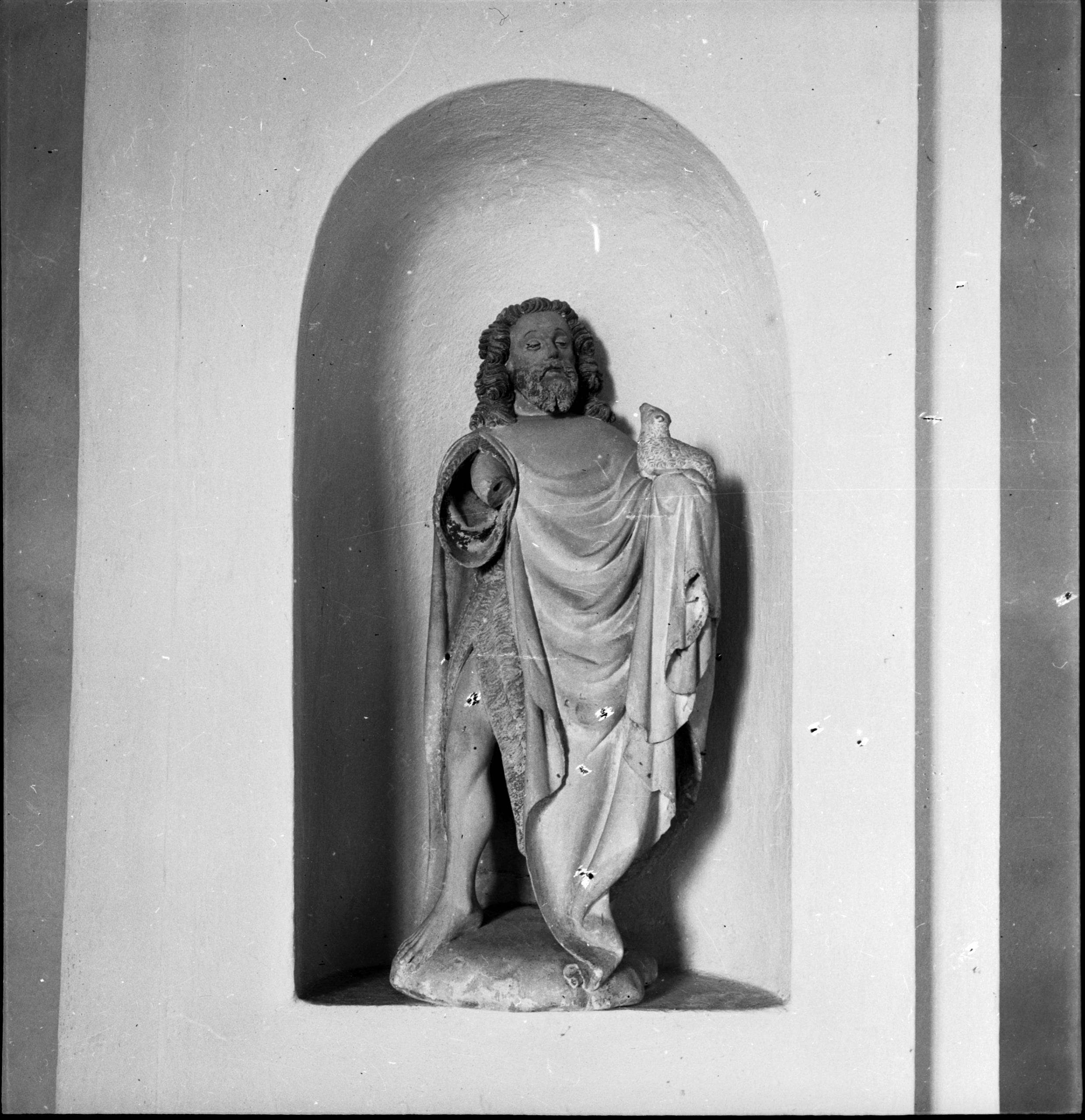 Skulptur, sandsten, Johannes Döparen, från omkring 1425.