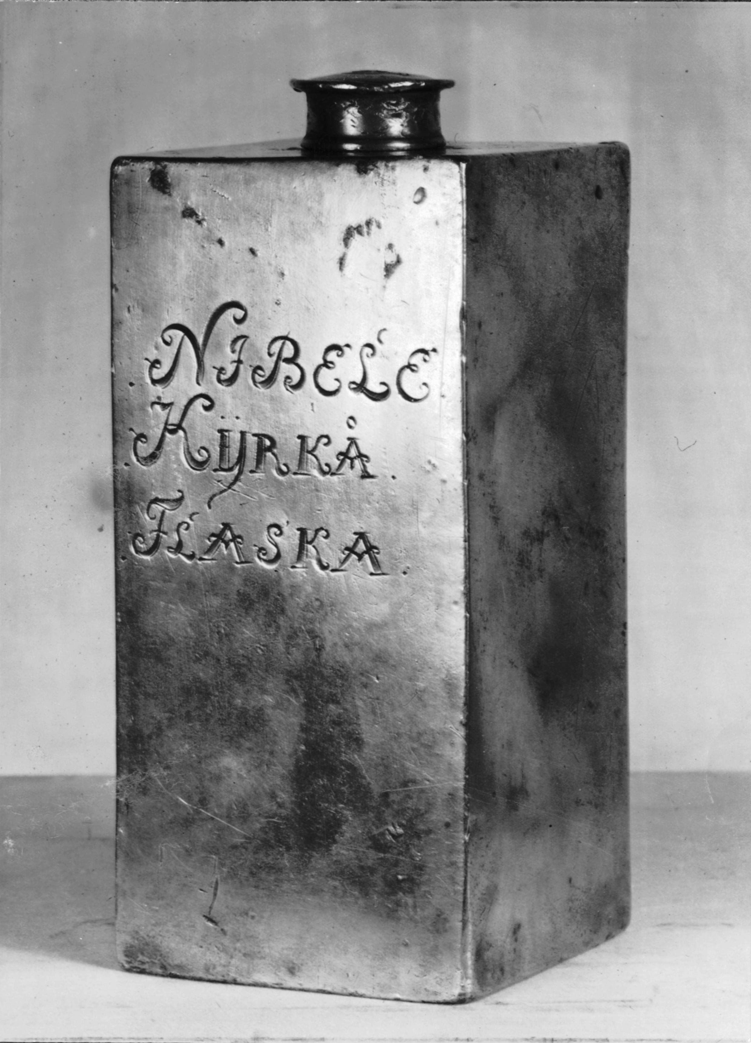 Tennflaska av Hans Crohn, tenngjutaremästare i Lund 1746-67.