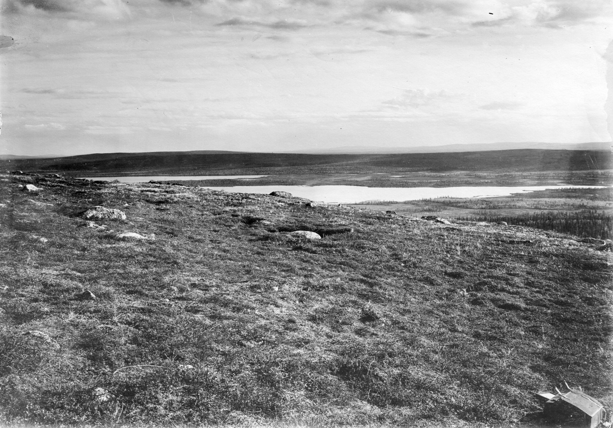 Biotop för Fjällpipare, Eudromias morinellus, I förgrunden en slänt å Dundret