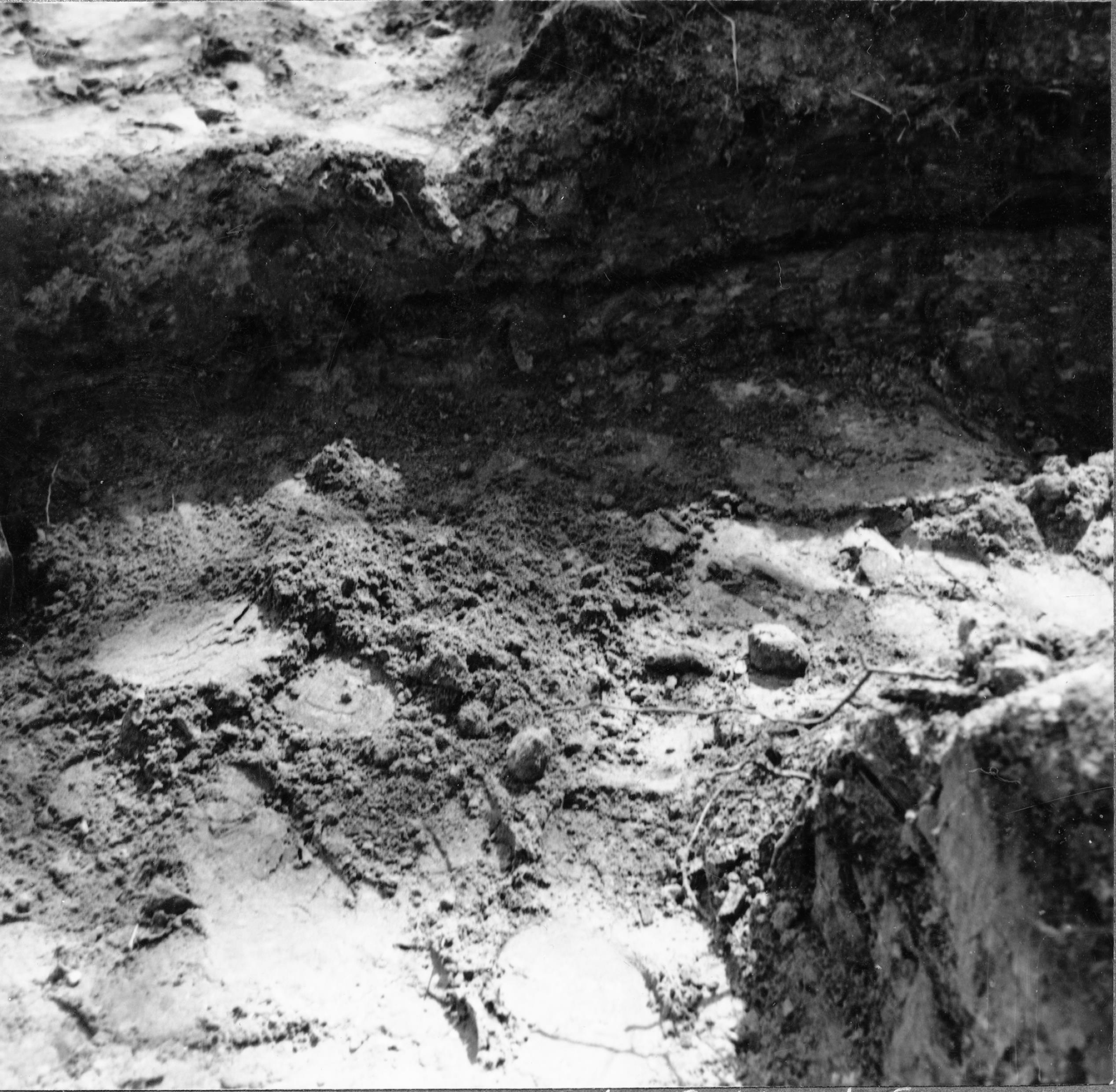 Utgrävning, mittschakt i koret framför gravkorets (Broman-Löwenhielmska) trappa.
