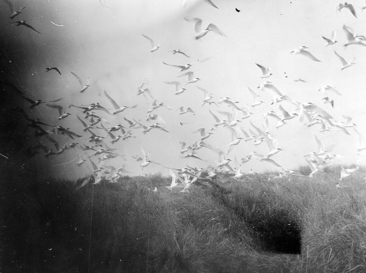 Kentsk tärna (Sterna cantiaca) och några skrattmåsar.