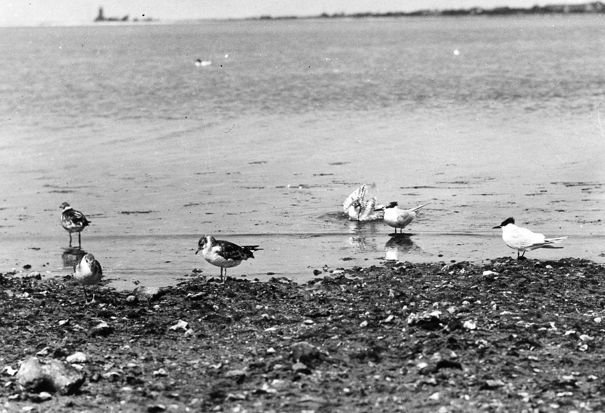 Kentsk tärna (Sterna cantiaca) och unga skrattmåsar.