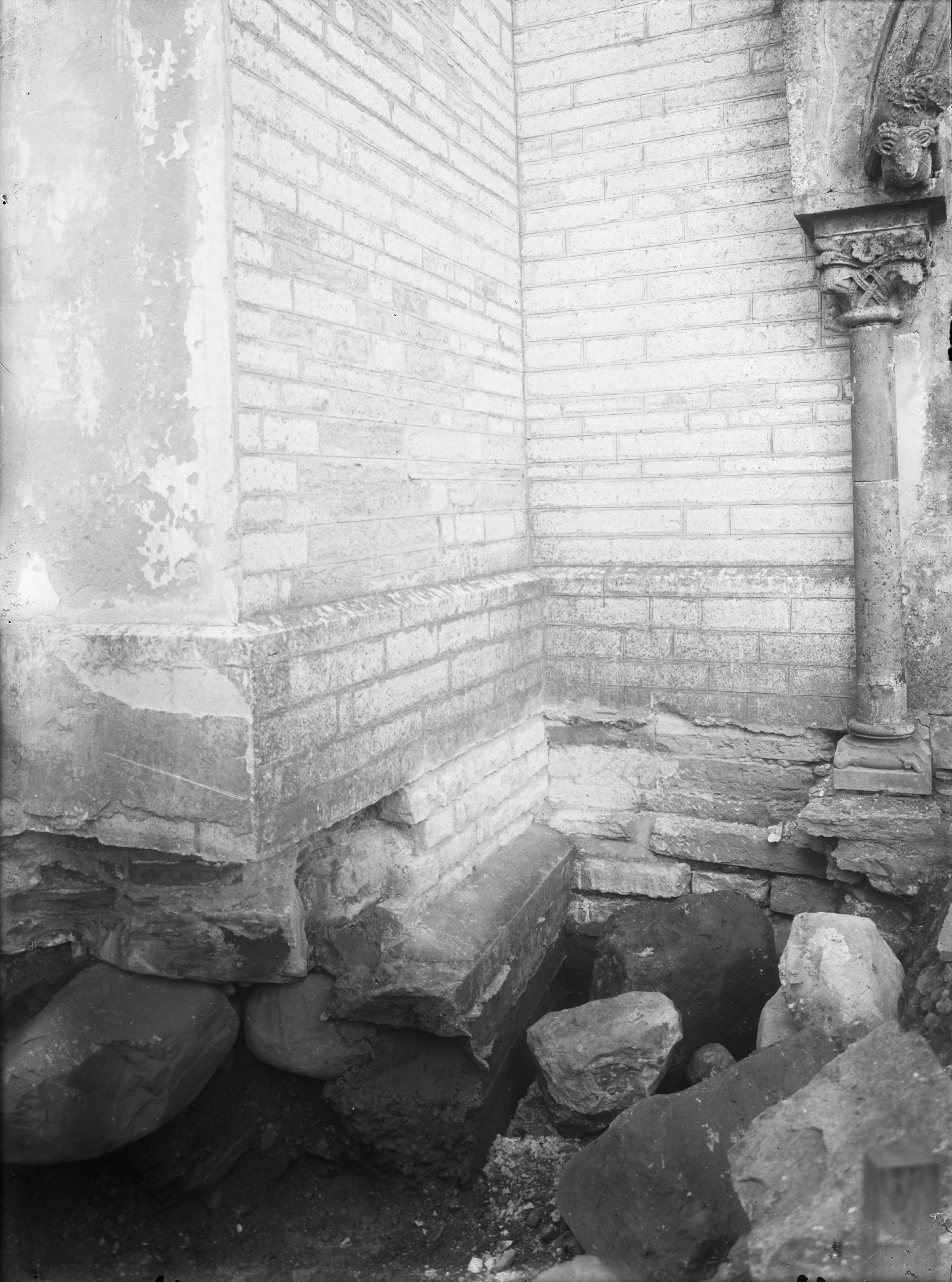 Norra tvärskeppets östra strävpelare under grundförstärkning, från nordväst.