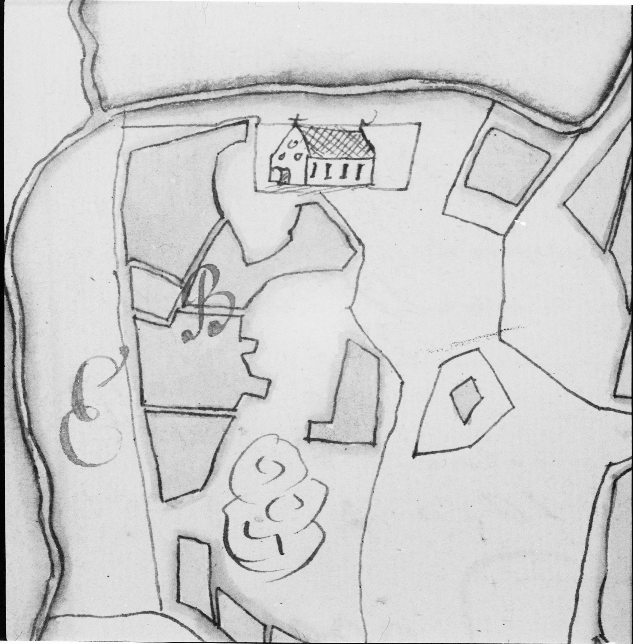 Karta över kyrkans omgivningar. Original i Lantmäteristyrelsens arkiv.