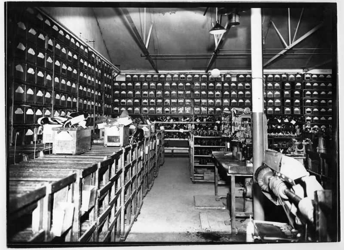 Interiör lagret på skofabriken, A F Carlssons skofabrik, Vänersborg