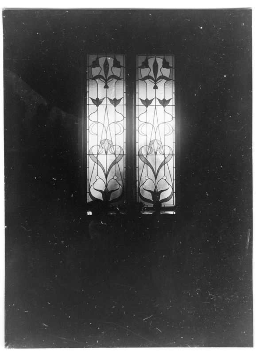 Fönster med målat glas och blyspröjs Blåsut Vassända-Naglum