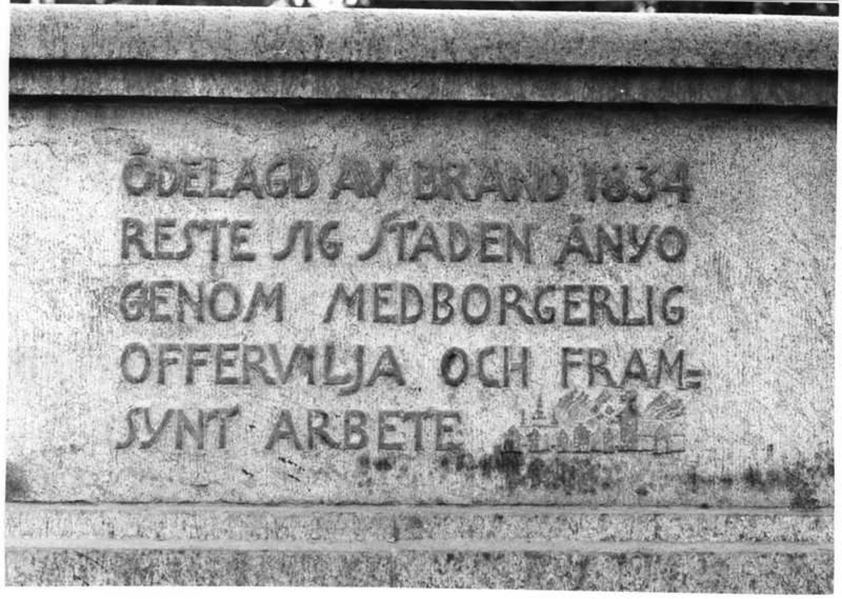 Torgbrunnen, inskription på sidan av brunnen, Torget Vänersborg