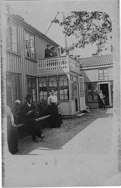 Vänersborg. Gårdshusen på Edsgatan 12. I fonden en liten speceriaffär. I dörröppningen ägaren J F Svensson