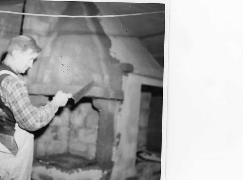 Karl Bodén murar spisen i soldatstugan på Vänersborgs Museum