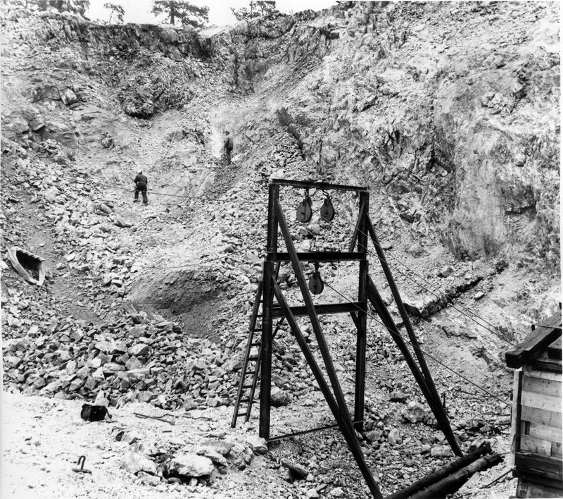 Skrapspel ovanför bergtunneln och bilarnas lastplats.