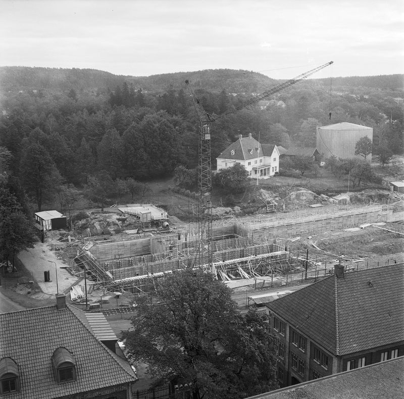 Wargöns AB. Byggnation av PM 5 1959-60. Foto och påförd text av dåvarande ritkontorschefen Ragnar Söderberg.