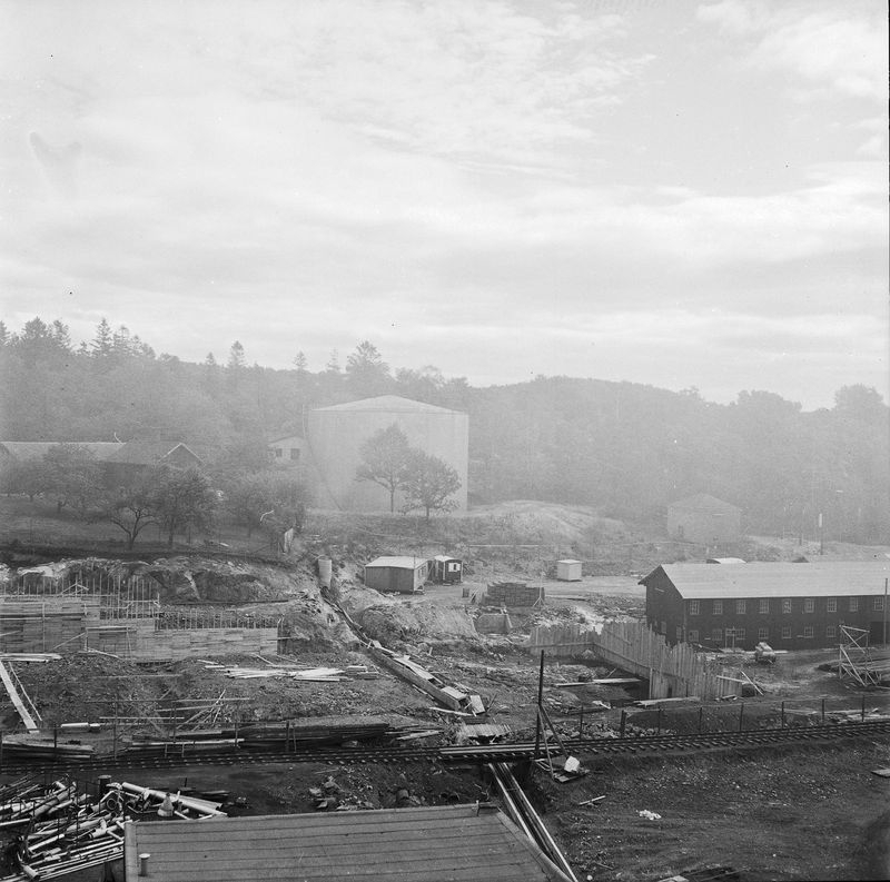 Wargöns AB. Byggnation av PM 5 1959-60. Foto och påförd text av dåvarande ritkontorschefen Ragnar Söderberg.