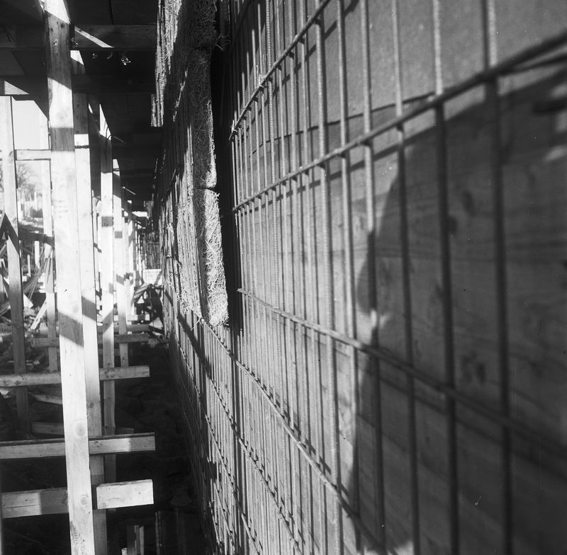 Armering och isolering i yttervägg linje E.