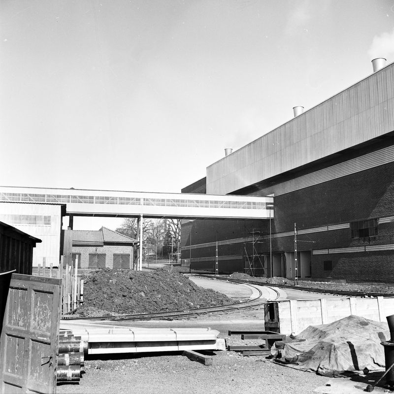 Wargöns AB. Byggnation av PM 5 1959-60. Foto och påförd text av dåvarande ritkontorschefen Ragnar Söderberg.