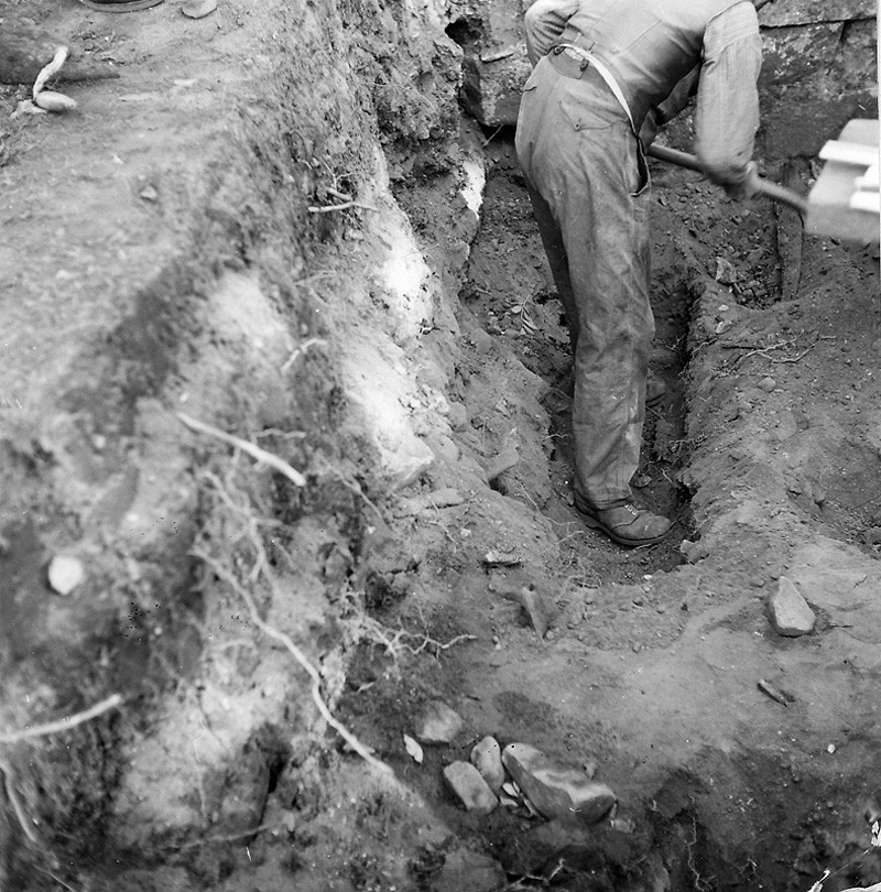Västra Tunhem sn, kyrkan. Påträffat gravkor på V Tunhems kyrkogård. Trappan ner till koret