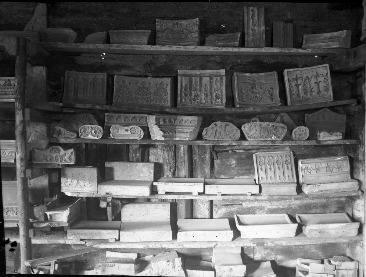 Titel: Krukmakeriverkstaden, Interiör-Kakelugnsplattor. V Bodane Frändefors