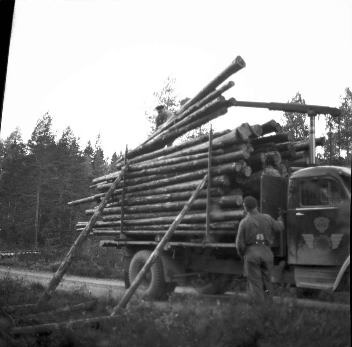 Timmertransport vid nya vägen i Kroppefjäll Ör