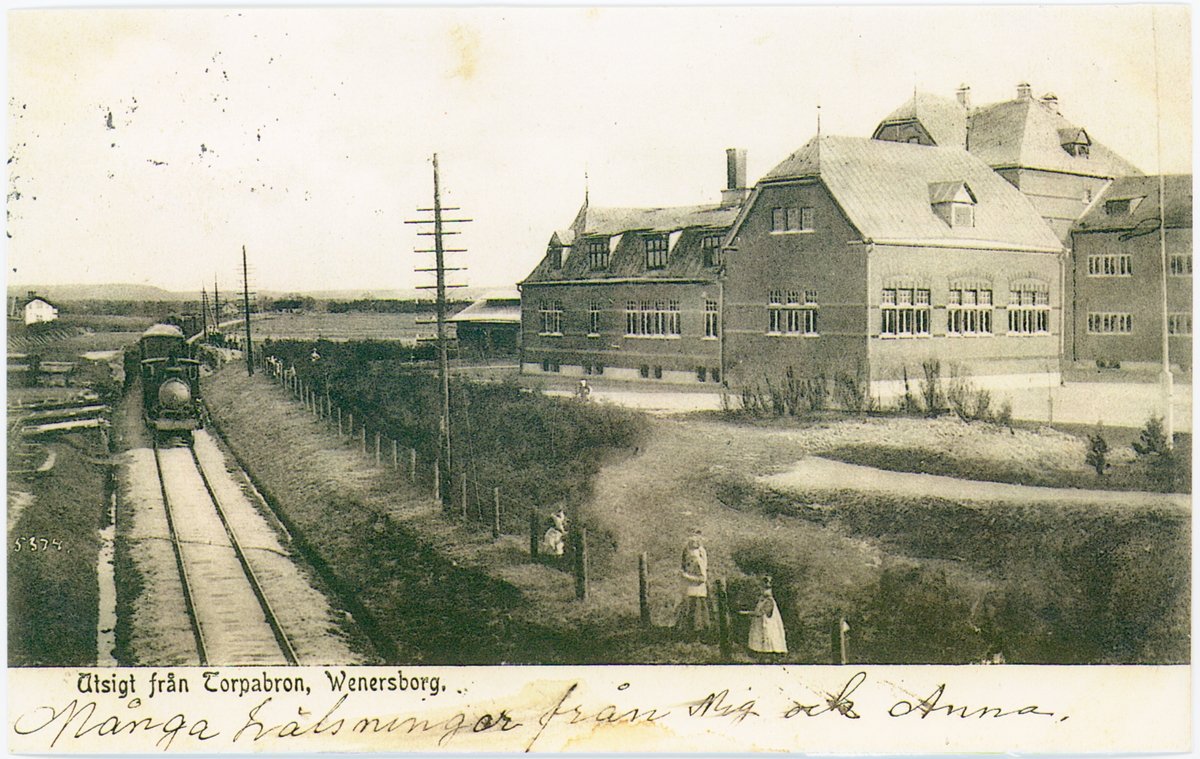 Vänersborg. Fjärde distriktets dövstumskola, senare Vänerskolan. Externatet. Utsikt från Torpabron