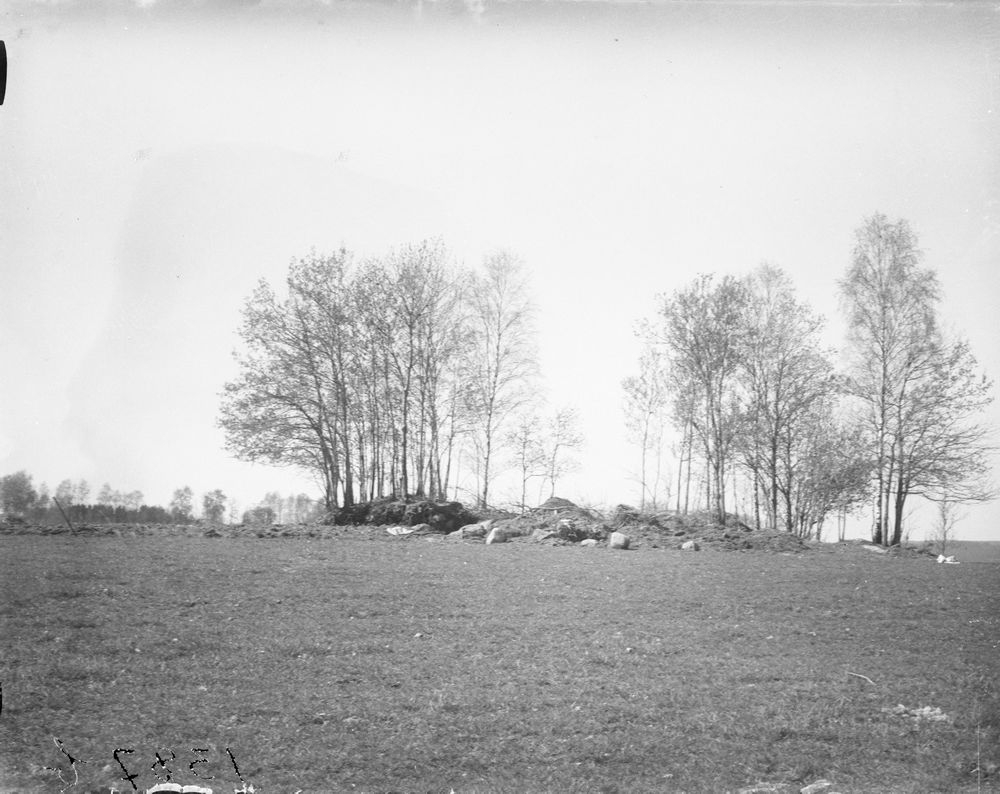 Titel: Rester av hällkista i skadad gravhög. Högstorp Skepplanda